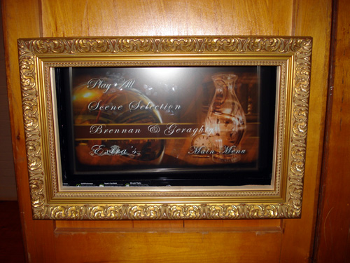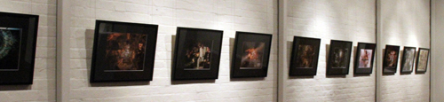The openings for the screen and peepholes were framed in ornate gilt , the whimsical idea of Trevor Spohr who helped David construct the booth. It was an interesting juxtaposition of old and new, and fitted well with the theme of David’s work.